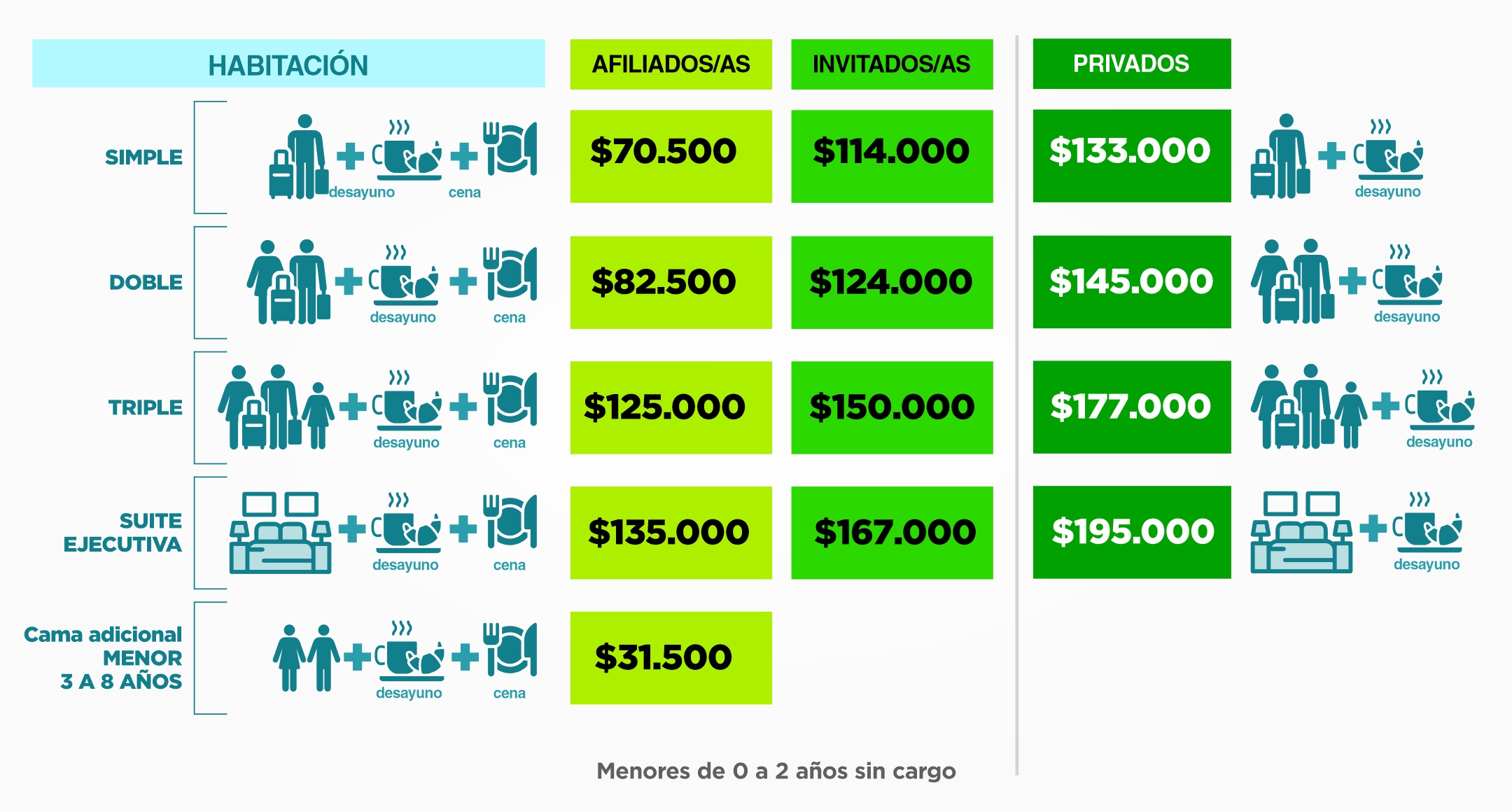 Servicios especiales: TV Led de 32", frigobar, sistema de audio centralizado, caja de seguridad; amenities de baño y secador de cabello.