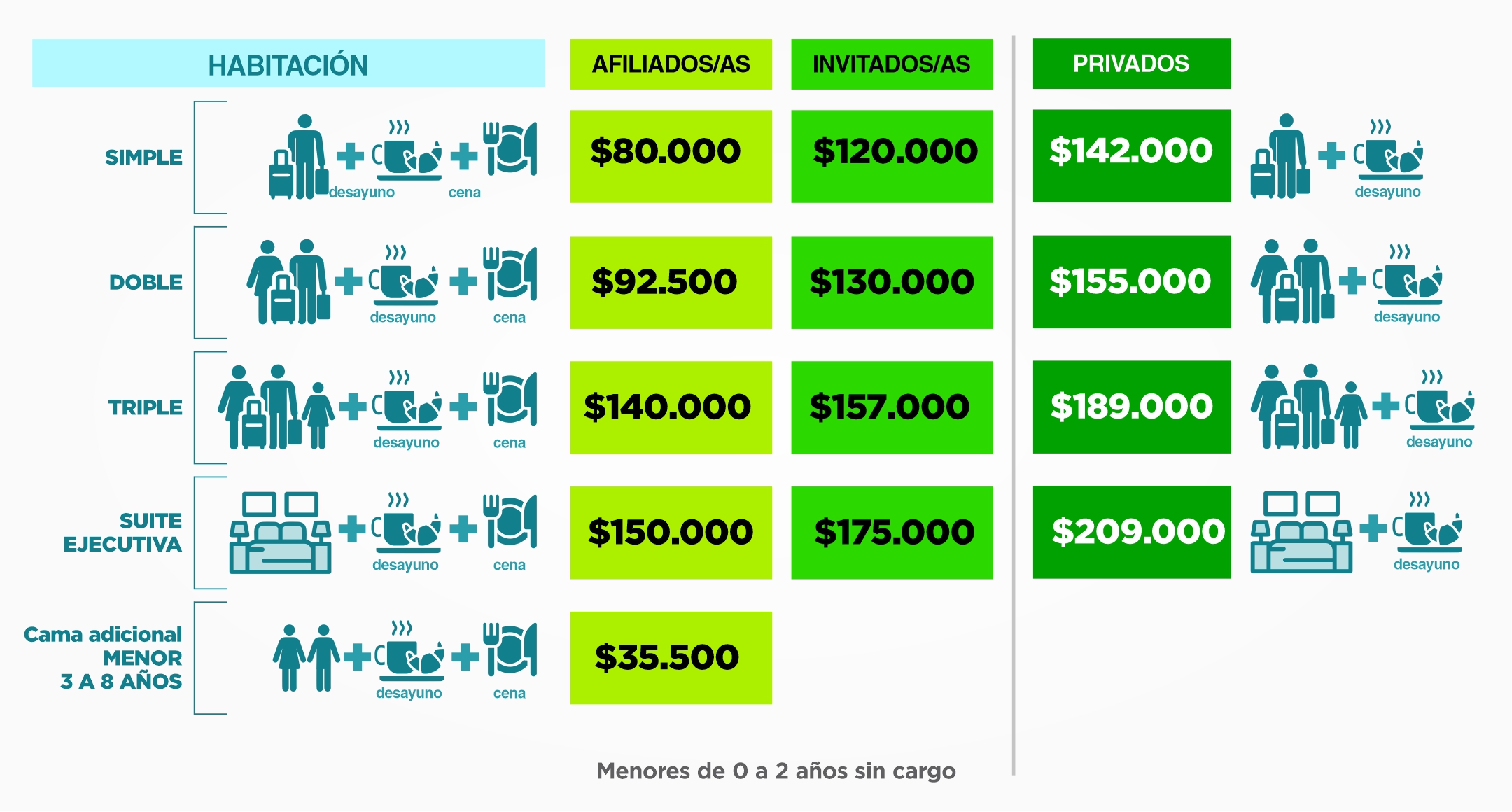 Servicios especiales: TV Led de 32", frigobar, sistema de audio centralizado, caja de seguridad; amenities de baño y secador de cabello.